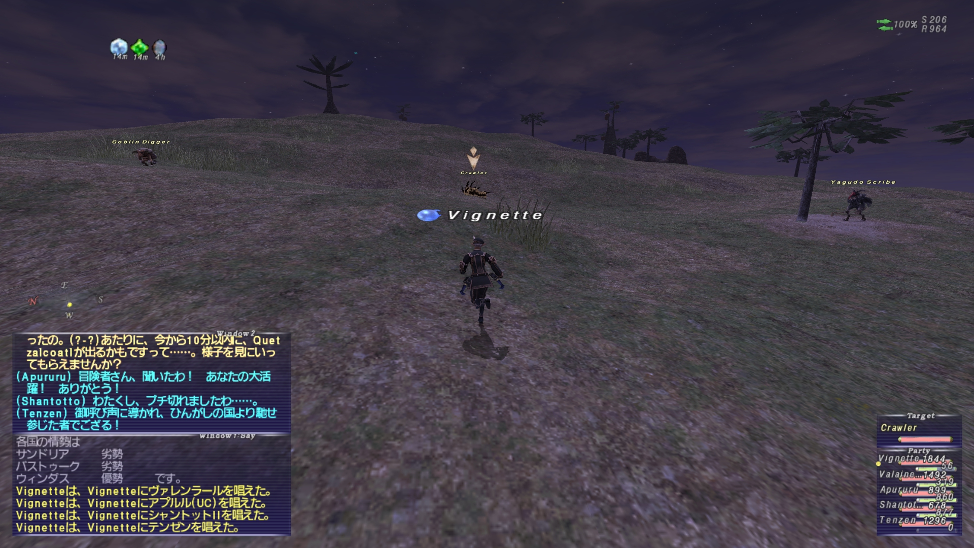 솔플을 위한 중량석을 구하기 위해 크로울러를 멸종시키러 뛰어가는 모험가의 모습이다